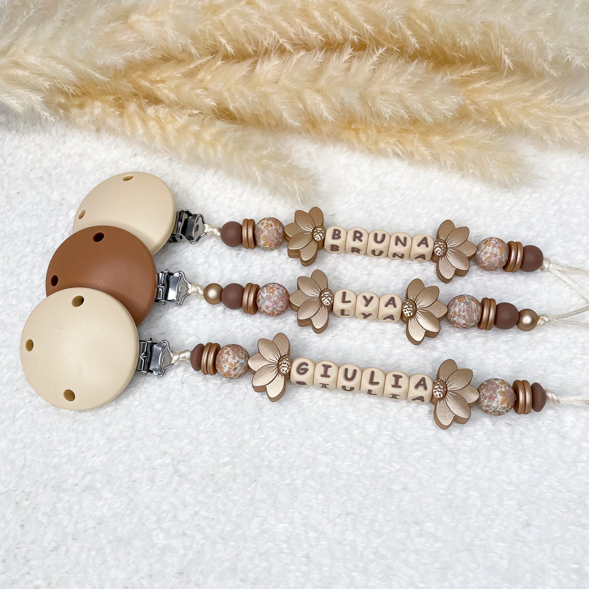 Attache tétine Chocolat : Chocolat glacé, or light, bruny & lotus or light 🤎