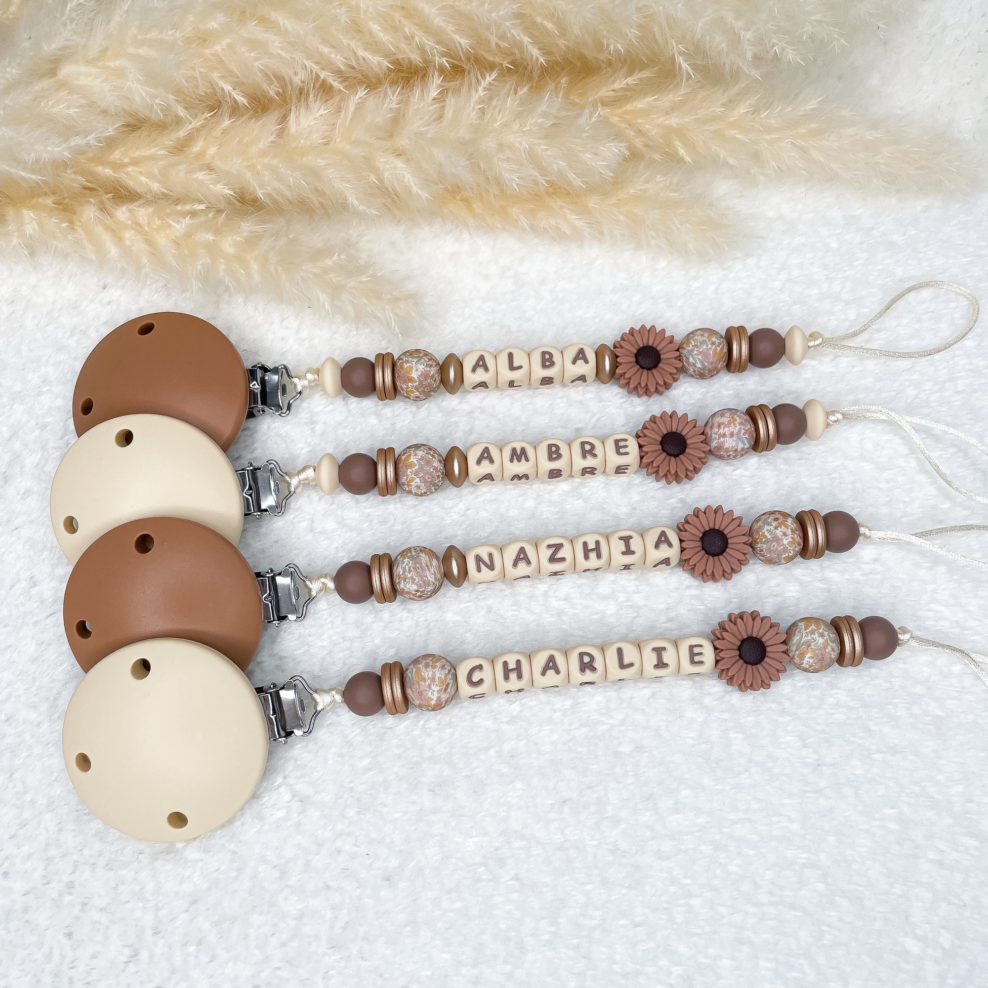 Attache tétine Chocolat : Chair, chocolat glacé, or light, bruny & marguerite argan 🤎