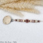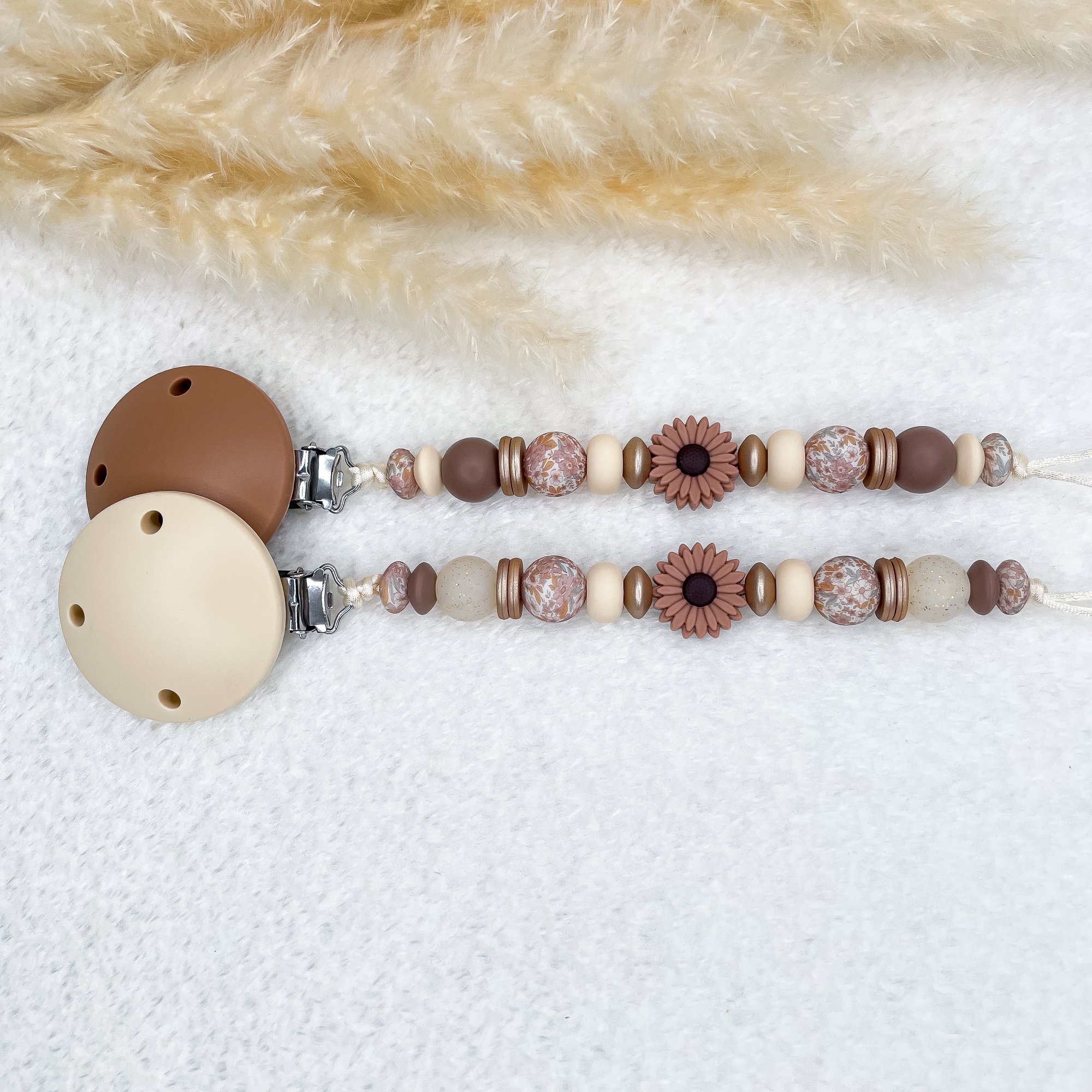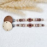 Attache tétine Chocolat : Bruny, chair, chocolat glacé, or light & marguerite argan 🤎